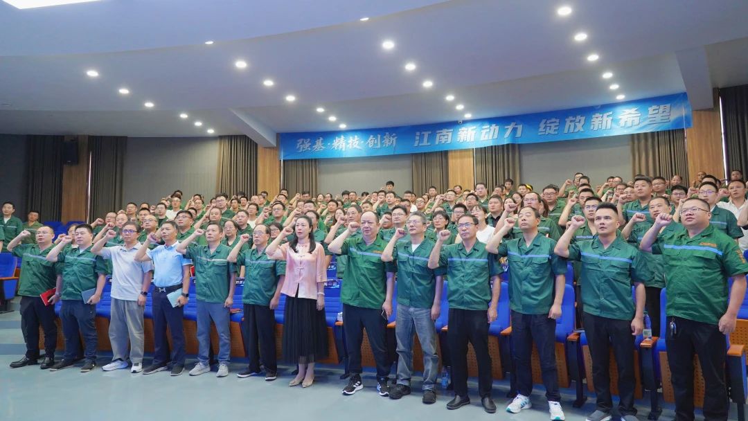 全體成員起立,以莊重姿態(tài)宣讀誓詞:勇于挑戰(zhàn)、奮戰(zhàn)競賽、致力創(chuàng)新、以終為始,鎖定目標知行合一,滿懷奮斗激情,永遠做江南新的動力,綻放新的希望!