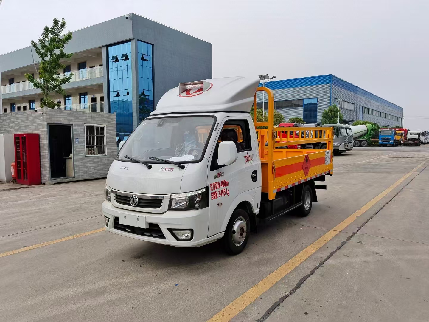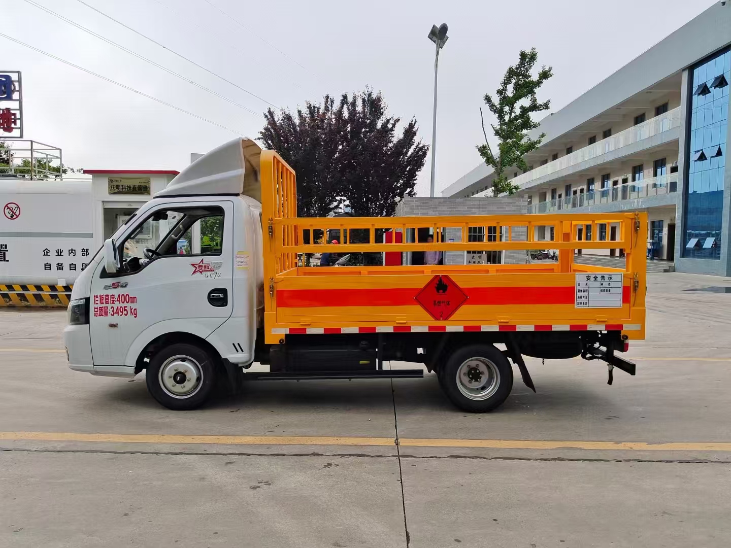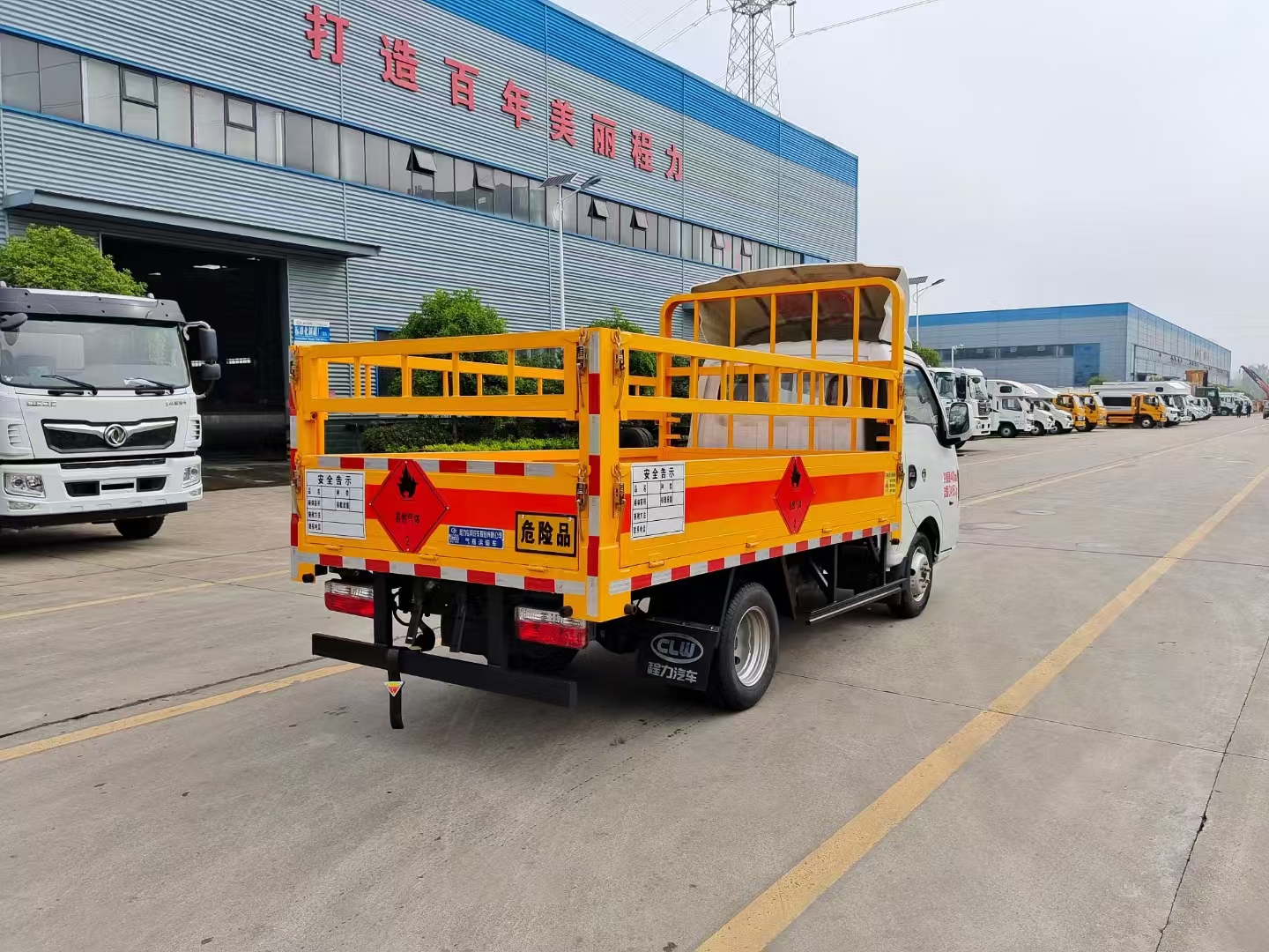 上裝配置 欄板可選裝高欄或者低欄,底板為3mm板材,底板上鋪有靜電膠皮,有靜電帶、滅火器、防火罩。整車國標(biāo)反光標(biāo)示及警告標(biāo)志。