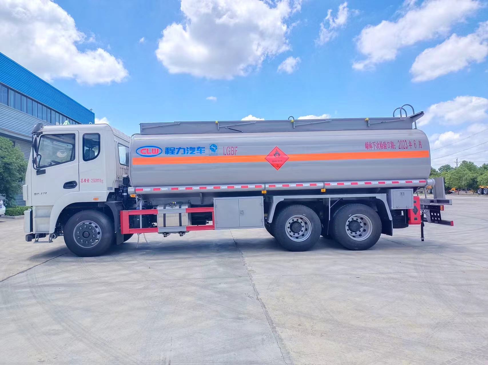 ??????湖北程力汽車:程力危化運(yùn)輸車東風(fēng)錦程21.7方油罐車產(chǎn)品型號(hào)及參數(shù)配置,程力危化運(yùn)輸車東風(fēng)錦程21.7方油罐車高清圖片,程力汽車系列程力?;\(yùn)輸車東風(fēng)錦程21.7方油罐車最新報(bào)價(jià)請(qǐng)撥打客服熱線。車輛主要配置 產(chǎn)品商標(biāo) 程力牌 公告批次 362(擴(kuò)展) 產(chǎn)品名稱 運(yùn)油車 產(chǎn)品型號(hào) CL5260GYY6BWG 總質(zhì)量(Kg) 26000 罐體容積(m3) 21.7 額定載質(zhì)量(Kg) 14500,14565 外形尺寸(mm) 960025503500,3480 整備質(zhì)量(Kg) 11...
